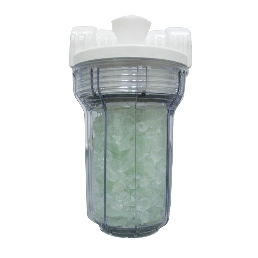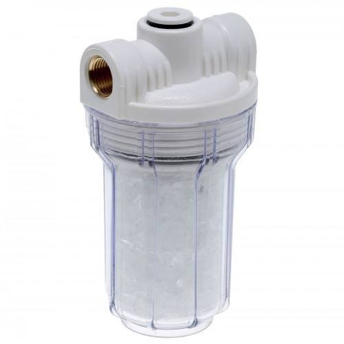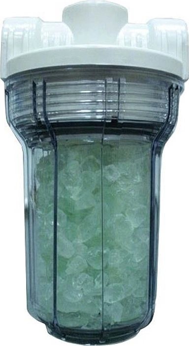 Прозрачный корпус фильтра позволяет контролировать работоспособность системы. При растворении полифосфата более чем на половину необходимо заменить наполнитель.