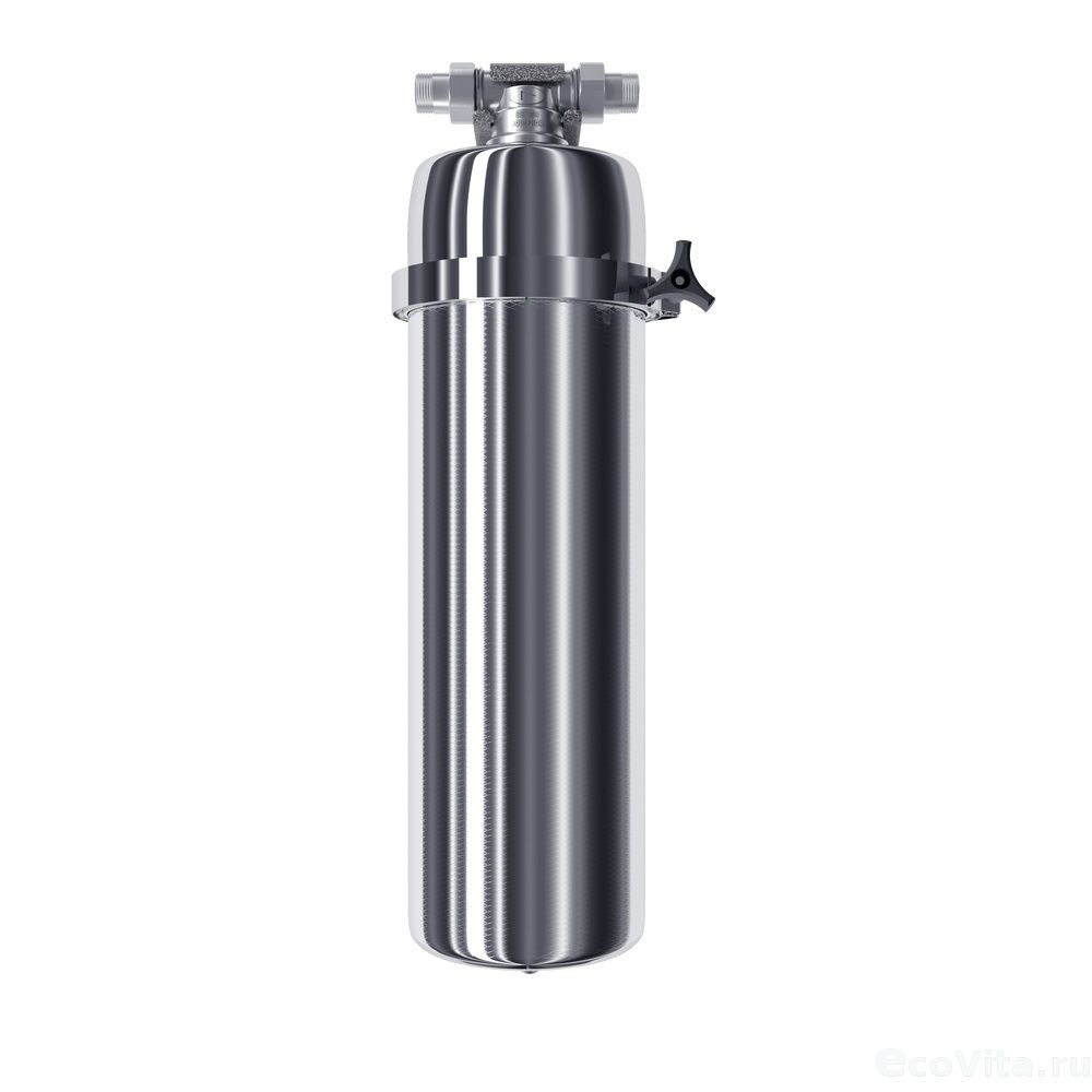 Кронштейн из нержавеющей стали оснащен креплением «американка». Это облегчает замену фильтрующего модуля в труднодоступном месте.