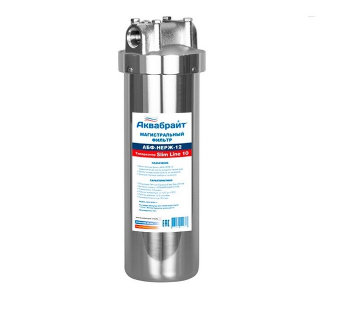 Магистральный фильтр Аквабрайт АБФ-НЕРЖ-12 для очистки горячей и холодной воды