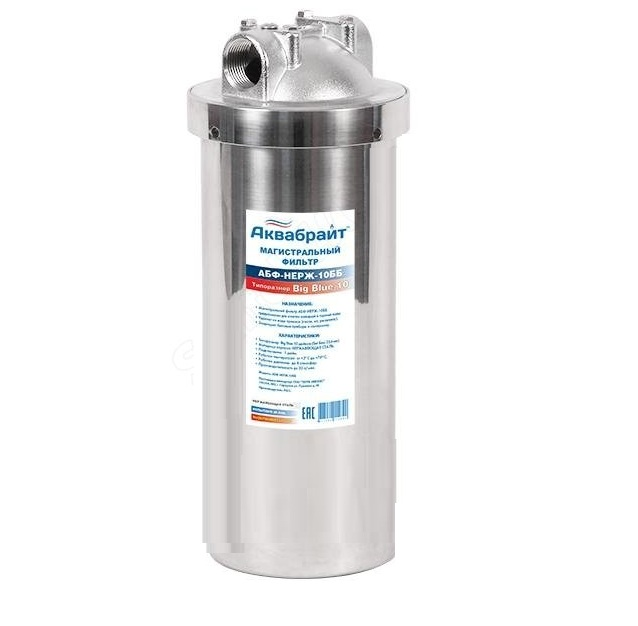 Магистральный фильтр Аквабрайт АБФ-НЕРЖ-20ББ для очистки горячей и холодной воды.