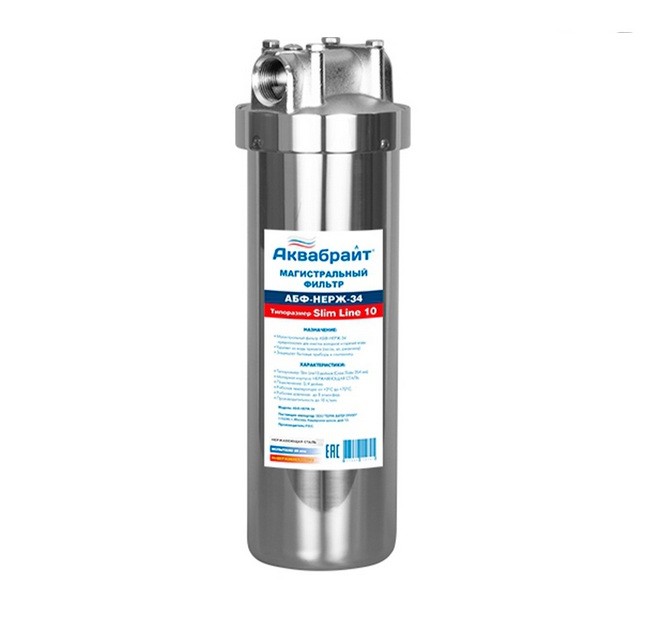 Магистральный фильтр Аквабрайт АБФ-НЕРЖ-34 для очистки горячей и холодной воды
