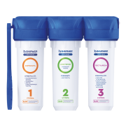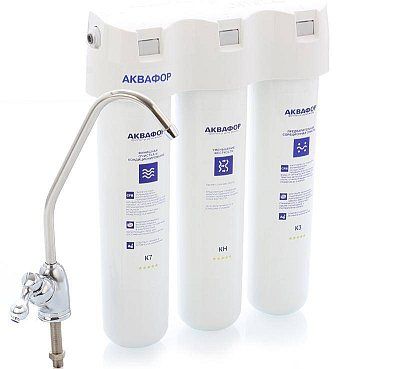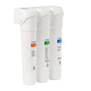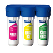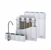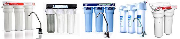 Система представляет собой несколько емкостей цилиндрической формы с различными типами картриджей. Многоступенчатый фильтр устанавливается под мойку, подключается к водопроводу, а наружу выводится кран для подачи чистой воды. Высокая скорость очищения жидкости такой моделью позволит быстро наполнить водой любую емкость.