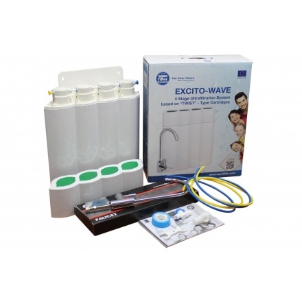 Четырёхступенчатый фильтр Aquafilter EXCITO-WAVE изготовлена из сертифицированных компонентов NSF. Набор на основе новых картриджей типа “TWIST“, которая позволяет быстро и легко заменять картриджи, без использования специальных инструментов. Система удаляет отложения, такие как: песок, ил, ржавчина, хлор, органические соединения и улучшает вкус и запах воды. Также уменьшает жесткость воды и концентрацию железа. УФ-мембрана удаляет загрязнения до 0,02 мкм, в том числе большинство бактерий и вирусов.