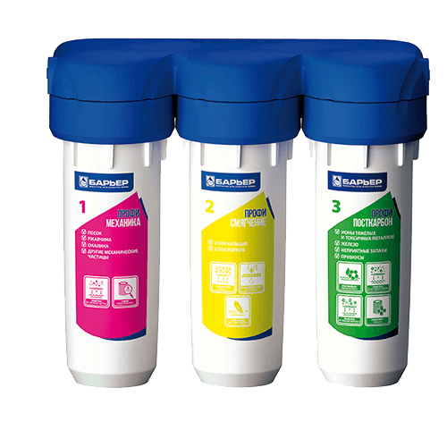 БАРЬЕР ПРОФИ Смягчение - ионообменная смола снижает в воде содержание солей жесткости. Благодаря применению технологии byPass увеличивается ресурс и устраняется побочный эффект гиперумягчения в начале ресурса.