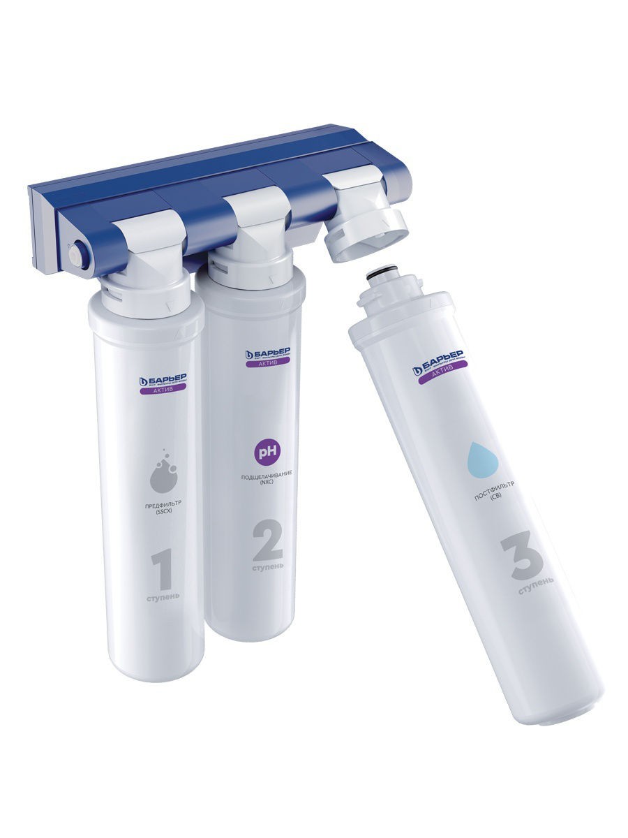 Фильтр Барьер Актив Сила Баланса под мойку для механической очистки воды, нейтрализации хлора, цвета, запаха, обогащения кальцием, магнием и умягчения. Производительность: 2 л/мин, количество ступеней очистки: 3