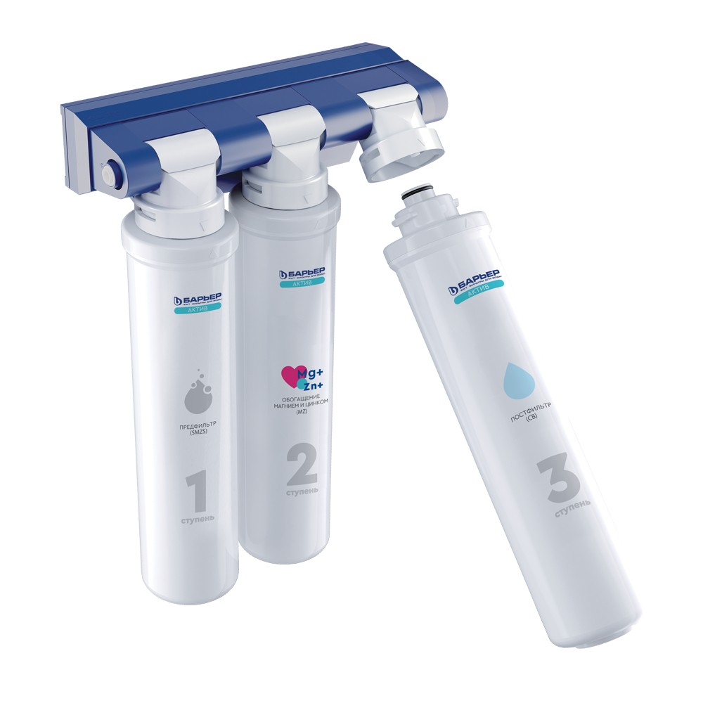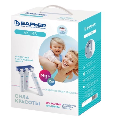 Фильтр нового поколения БАРЬЕР АКТИВ Сила красоты разработан на базе уникальных австрийских технологий обогащения воды полезными минералами. Трехступенчатый и в тоже время компактный фильтр, эффективно очищает воду от хлора, органических примесей и тяжелых металлов, дозируя в воду Магний и Цинк. Для тех, кому важен внешний вид и внутреннее здоровье организма. Питьевая вода также выступает важным источником Магния. Поскольку клетчатка и фитатные соединения препятствуют усвоению Цинка, из растительных продуктов организм получает лишь 10-20% от общего содержания элемента. Тогда как усвояемость Цинка из питьевой воды довольно высокая - до 90%, при употреблении натощак.