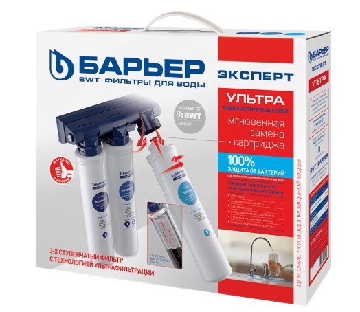 Фильтр Барьер ЭКСПЕРТ Ультра под мойку для удаления бактерий и вирусов в водопроводной воде, производительность: 2 л/мин, количество ступеней очистки: 3