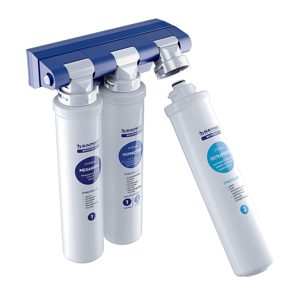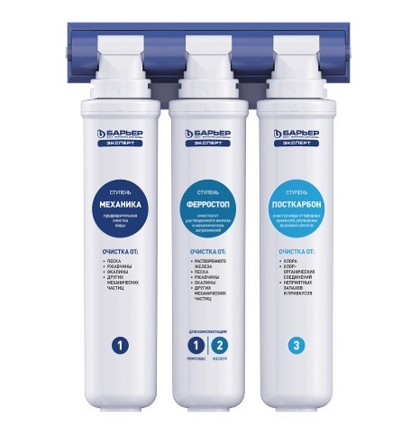 «БАРЬЕР ЭКСПЕРТ Железо» – для железистой воды. Уникальная технология «FERROSTOP» дает превосходный результат очистки от железа при высоких концентрациях (до 5 ПДК). Осуществляет эффективную очистку воды в том числе от растворенного железа.