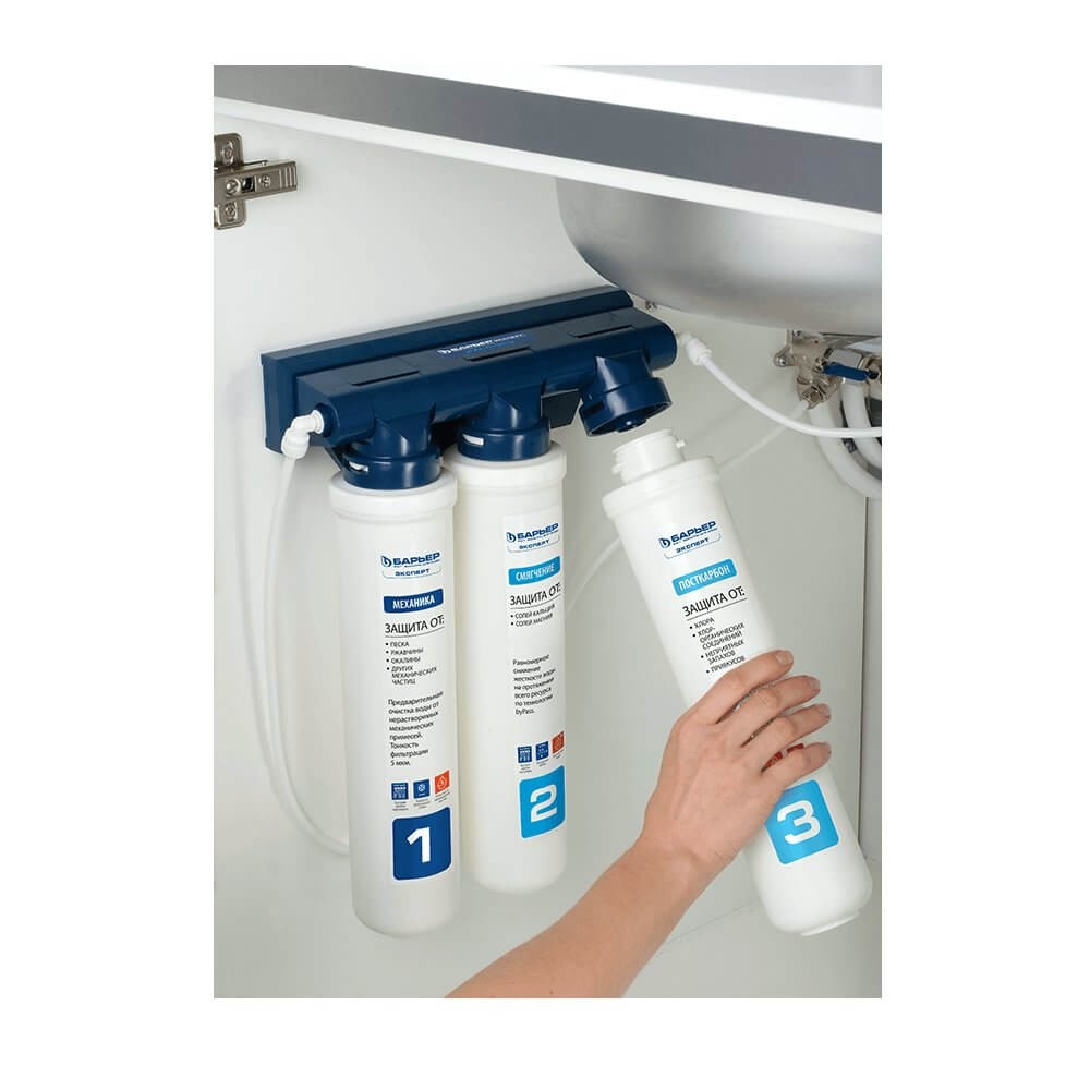 Фильтр для очистки воды под мойку Барьер ЭКСПЕРТ Жесткость. Стационарная система "под мойкой", производительность: 2 л/мин, ресурс: 10000 л, количество ступеней очистки: 3