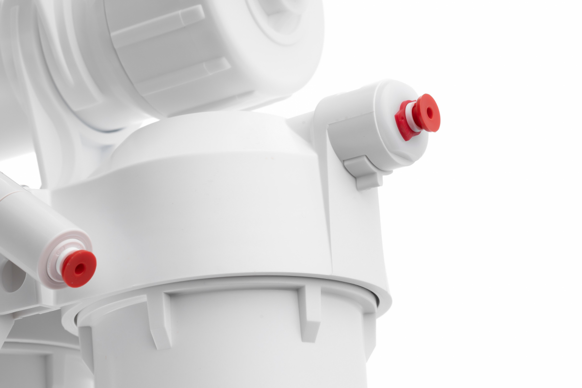 Во избежание появления посторонних запахов и привкуса в системе предусмотрен постфильтр. Благодаря сорбенту из кокосового активированного угля даже при продолжительном хранении в накопительной емкости вода всегда абсолютно прозрачна и имеет приятный вкус.