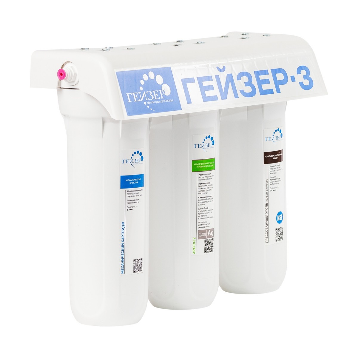 Фильтр для очистки воды под мойку Гейзер 3ИВ(Ж) люкс, Производительность: до 3 л/мин, количество ступеней очистки: 3