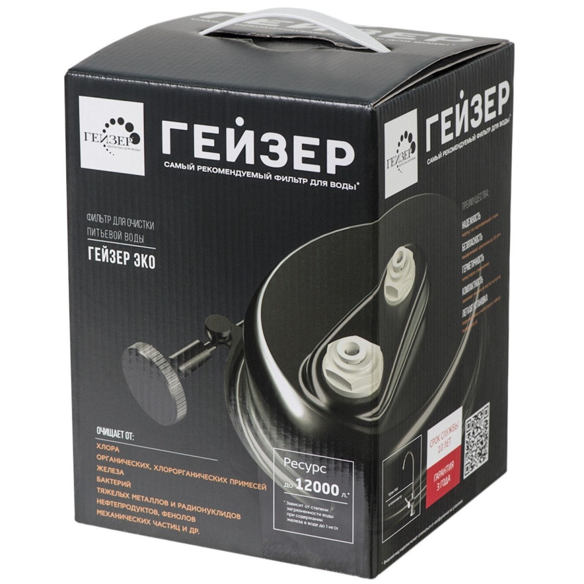 Гейзер ЭКО МАКС - для очистки водопроводной воды от хлора, тяжелых металлов, железа, нефтепродуктов, механических частиц и других нежелательных примесей. Полностью удаляет бактерии и вирусы. Нормализует жесткость воды. Специальная модификация «Арагон 3 Эко» сочетает механическую, сорбционную и ионообменную очистку. Увеличенный размер картриджа позволяет использовать больше фильтрующего материала, а значит — повысить качество водоочистки и ресурс системы.