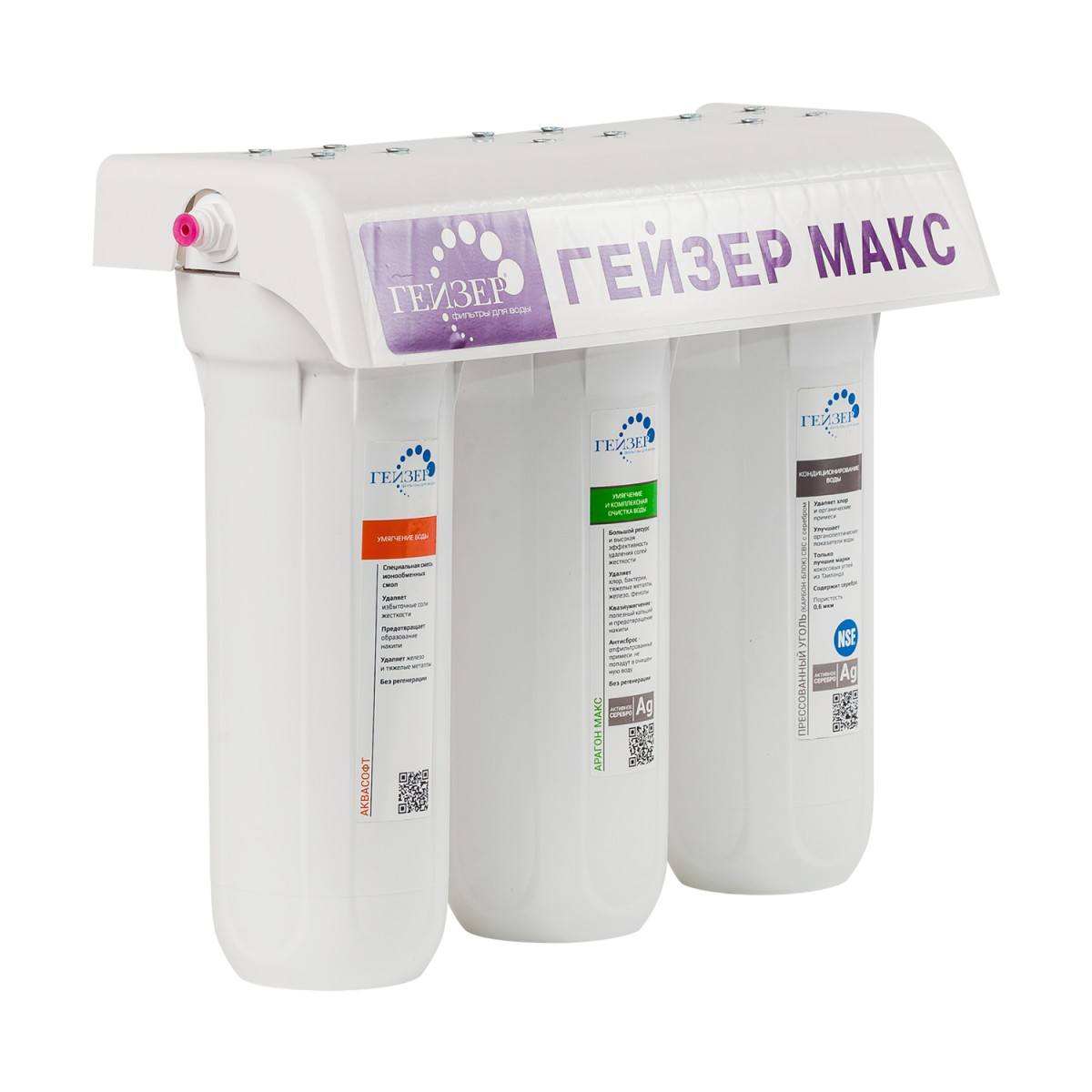 Фильтр Гейзер Макс под мойку для умягчения, снижения накипи и очистки жесткой воды, производительность: 3 л/мин, количество ступеней очистки: 3
