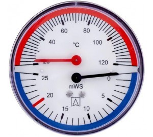 Термоманометры предназначены для одновременного измерения давления и температуры теплоносителя в отопительных системах. В термоманометрах датчики температуры установлены далеко от главного потока теплоносителя. Из-за этого термоманометры предназначены только для приблизительной оценки рабочих параметров отопительной системы. Чтобы давление и температуру измерять точно, надо использовать отдельные, самостоятельные измерительные приборы.