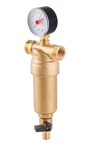 Фильтр магистральный самопромывной AV Engineering 1/2" 100 мкм с манометром (AVE115701) с сеточным картриджем из нержавеющей стали, 100 микрон. Используется для горячей воды. Максимальная рабочая температура - 100 °С.