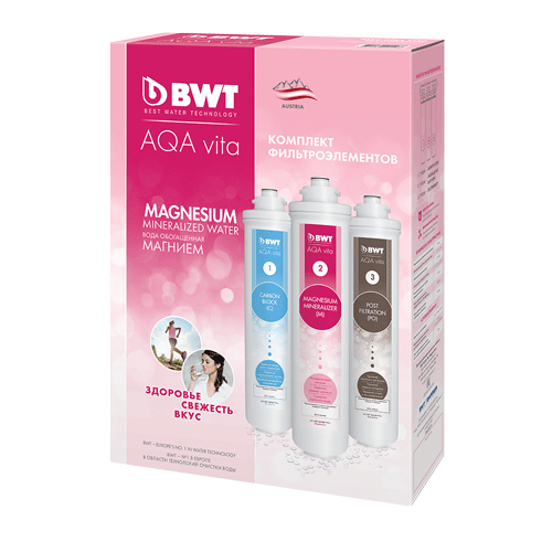 Комплект фильтроэлементов сменных BWT AQA vita Magnesium - для очистки водопроводной воды от механических примесей, хлора, хлорорганических соединений и ионов тяжелых металлов с последующим обогащением ионами магния