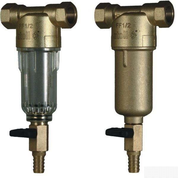 Промываемые фильтры тонкой очистки воды обеспечивают подачу отфильтрованной воды, препятствуя проникновению в магистрали инородных частиц, в частности ржавчины, волокон пеньки, песчинок и т.п. Эти частицы скапливаются на сетке фильтра и дне чаши, и могут быть легко удалены при включении режима проточной промывки. В процессе промывки поток воды захватывает мусор и удаляется либо в подставленную емкость, либо в канализацию (требуется врезка). Режим промывки выключается простым поворотом ручки шарового клапана.