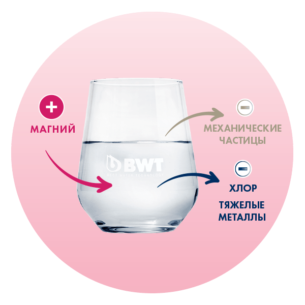 Самопромывной фильтр бытовой BWT AQA vita Magnesiumпредназначен для очистки водопроводной воды от механических примесей, хлора, хлорорганических соединений и ионов тяжелых металлов с последующим обогащением ионами магния.