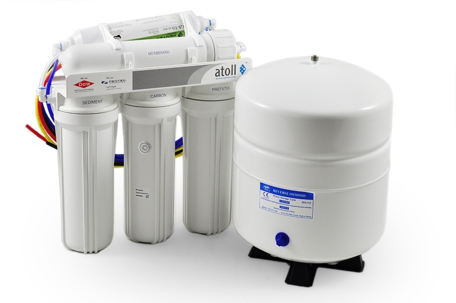 Используя метод обратного осмоса, Атолл прогоняет поток воды под давление через мембрану, которая пропускает исключительно молекулы воды и кислорода.
