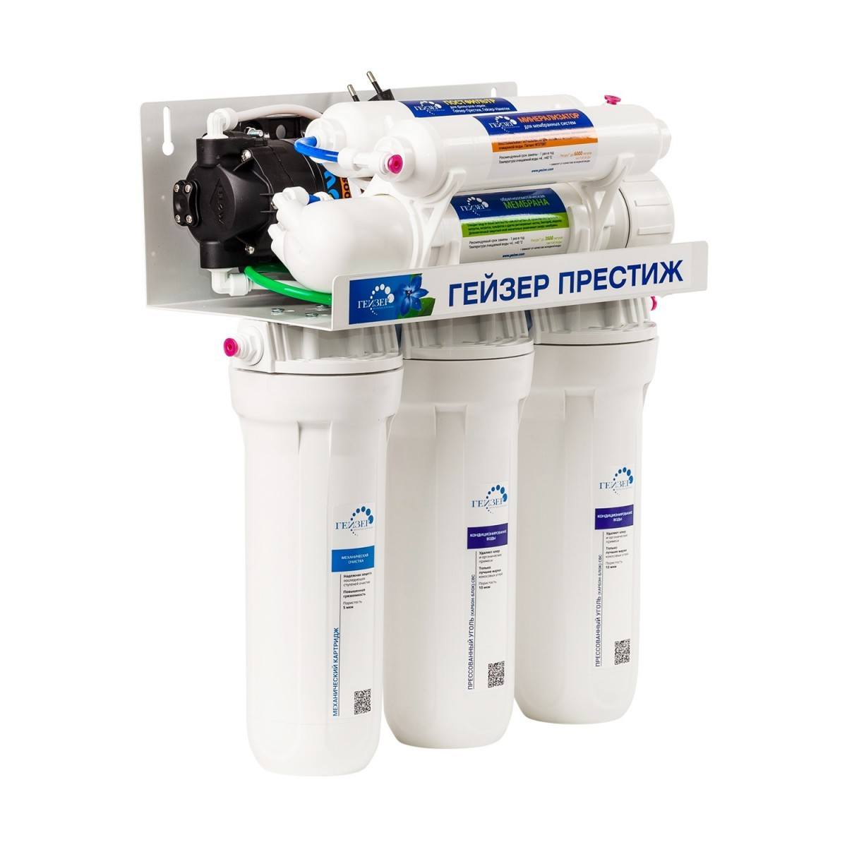 Фильтр обратного осмоса для воды под мойку Гейзер Престиж-ПМ с помпой и минерализатором, производительность: 0.14 л/мин, количество ступеней очистки: 6