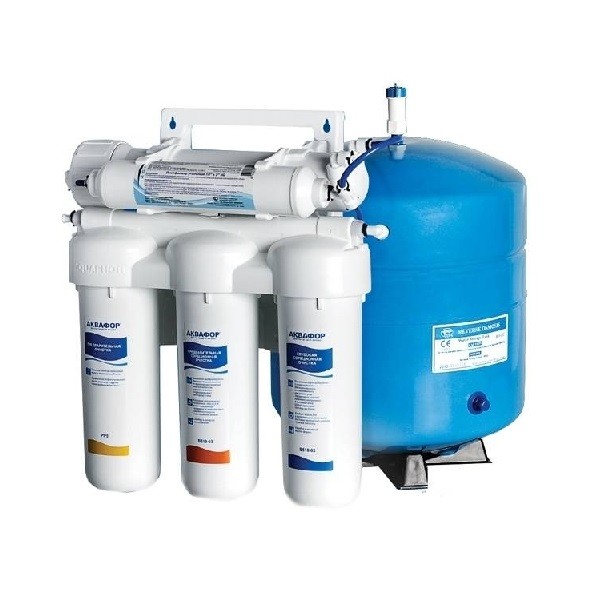Фильтр обратного осмоса Аквафор Осмо-50 исп.5. Идеальное решение для очистки воды, используемой для приготовления пищи и утоления жажды. Воду не требуется кипятить, в ней нет микробов и вирусов, что достигается благодаря мембране. Данная мембрана способна отфильтровывать частицы величеной до 0,0005 микрон. Происходит абсолютное умягчение при любом начальном уровне жесткости. Отфильтрованные вещества микробы и вирусы не накапливаются внутри фильтра, а смываются в канализацию. Это позволяет продлить срок службы мембраны и обеспечить ультра очистку воды.