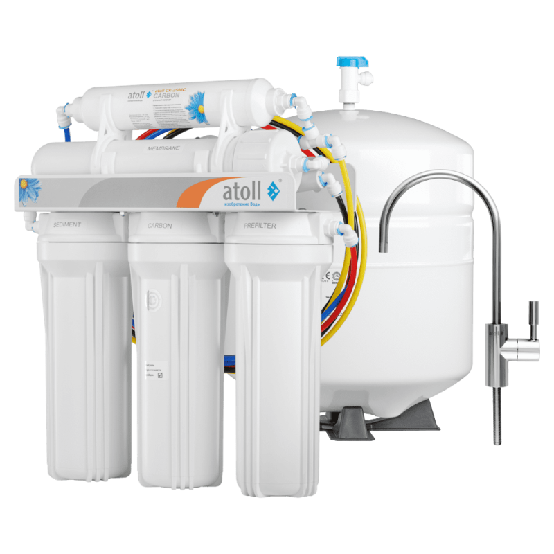 Обратноосмотическая система Атолл A-550 STDA удаляет из воды до 100 процентов загрязнений, в том числе соли жесткости (это основная причина появления накипи в чайнике и на других приборах), а также бактерии, микробы. Модель является высокопроизводительной — 120 литров за 24 часа. Фильтрация осуществляется без применения химических веществ: вода очищается благодаря специальной мембране из полупроницаемого материала, пропускающего только воздух и молекулы воды.