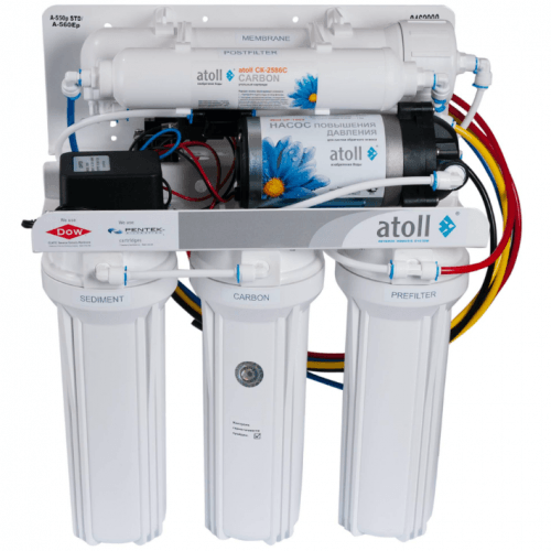 Atoll A-550p STD (A-560Ep) – это фильтр работающий по принципу обратного осмоса. Имеет пять ступеней фильтрации. Эффективно очищает воду от хлора, механических примесей, органических веществ и солей жесткости.
