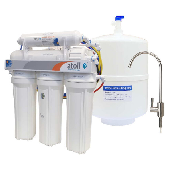 Система очистки воды на основе обратного осмоса Atoll A-575m RKT с минерализатором. Предназначена для доочистки воды в бытовых условиях и ее последующего употребления в пищу, а также других целей. Удаляет до 99,9% всех примесей содержащихся в воде и предотвращает образование накипи в нагревательных приборах. Фильтрация осуществляется за счет прохождения воды под напором через полупроницаемую мембрану, которая пропускает только молекулы воды и кислорода.