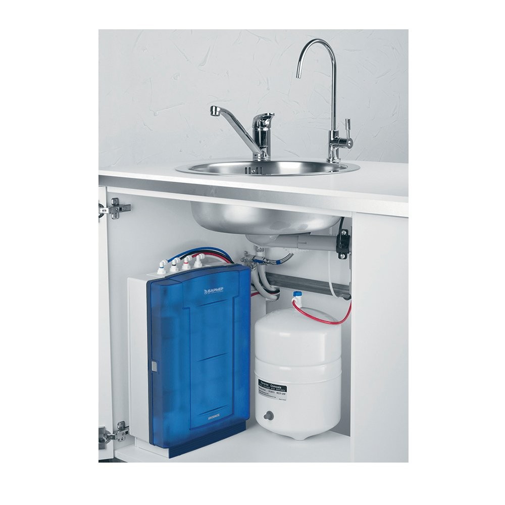 Система обратного осмоса Барьер WaterFort OSMO из блока предфильтров, мембраны, накопительного бака и постфильтра, производительность: 0,2 л/мин