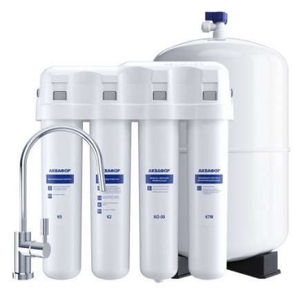 Водоочиститель (обратный осмос) Аквафор-ОСМО-Кристалл-050-4-М (новый узел) с накопительным баком и блоком кондиционирования в комплекте, аналог ОСМО 50-К исп.5 (снятого с производства). Производительность: 0,13 л/мин, Количество ступеней очистки: 4