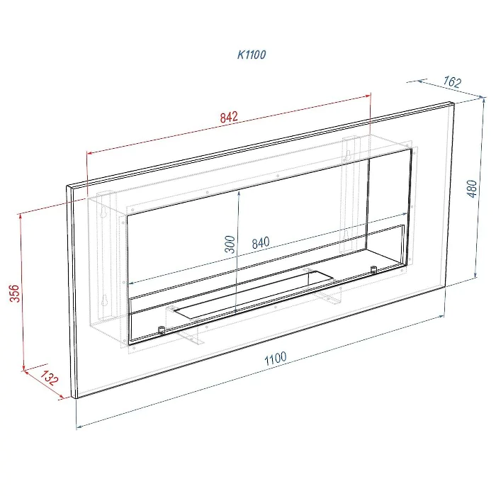 | Размер очага (ШхВхГ), мм | 1100х480х132 |