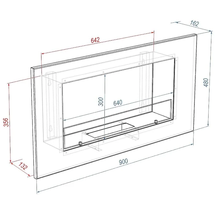 | Размер очага (ШхВхГ), мм | 900х480х162 |