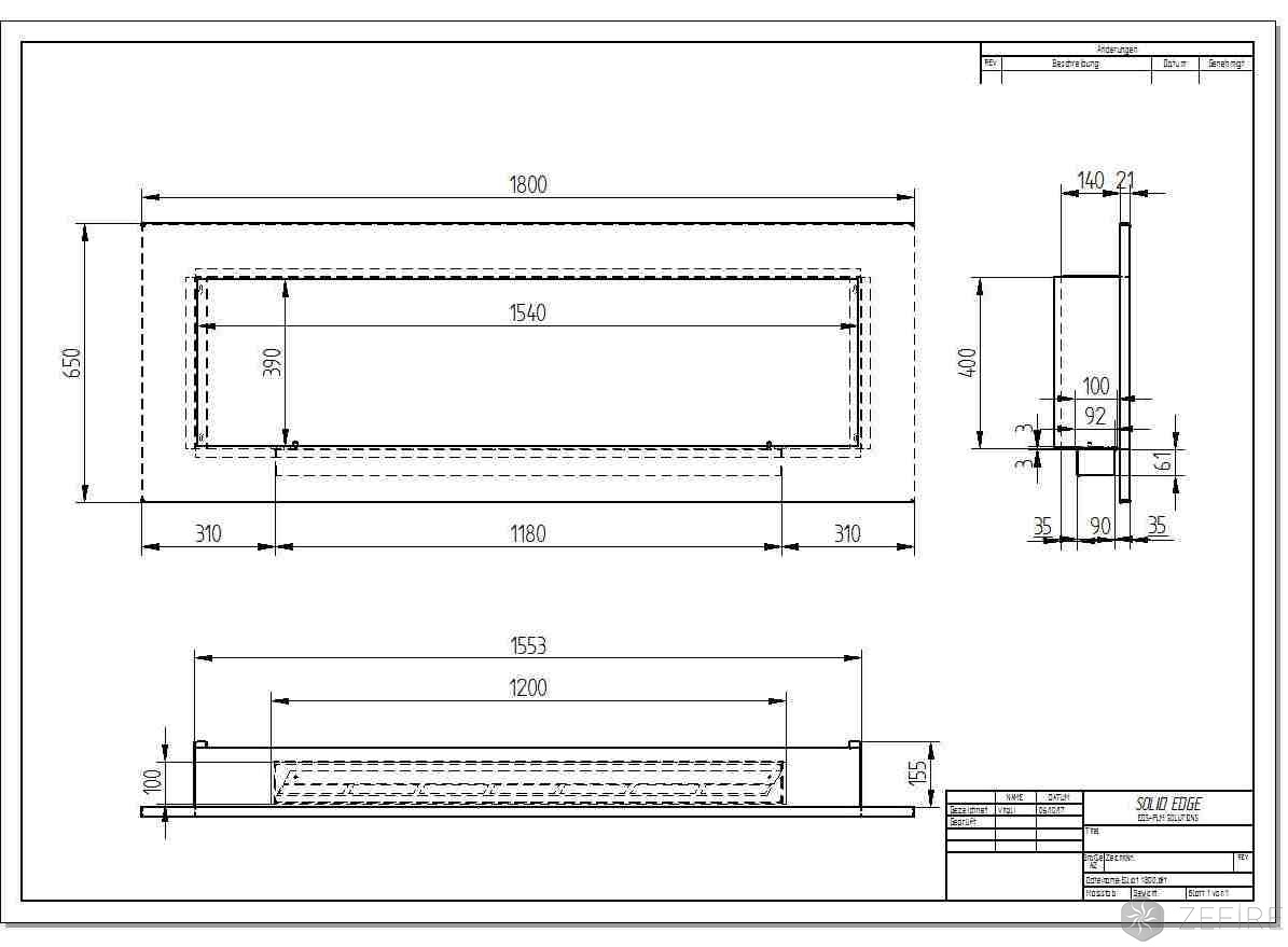 Биокамин Zefire Elliot horizontal 1800, объем топки 6,3 л, линия огня 1100 мм, габариты камина 1800х650х176 мм, портал в комплекте