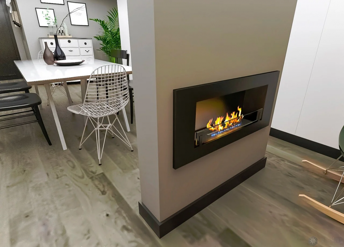 По способу установки биокамин Etude 900 настенный и встраиваемый. Это значит, что его можно просто повесить на вертикальную поверхность с помощью дюбель-гвоздей или шурупов, как картину. Или встроить в нишу в перегородке, коробе из гипсокартона или мебели из МДФ. В последнем случае очагу потребуется несложная теплоизоляция, например, с помощью минеральной ваты и фольги.
