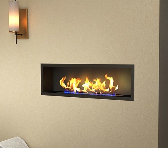 Встраиваемый биокамин Flagman 1000 можно инсталлировать в нишу в стене, коробе из гипсокартона и даже в мебели из МДФ. Экологичный очаг не нуждается в монтаже дымохода и дополнительной вентиляции, работает без подключения к электросети. Все, что нужно, – качественное биотопливо. Очаг биокамина – это цельносварная конструкция, окрашенная матовой порошковой краской. Такое покрытие устойчиво к перепадам температур, не выгорает и не выцветает. Поэтому огненный декор служит десятилетиями, сохраняет вид нового.