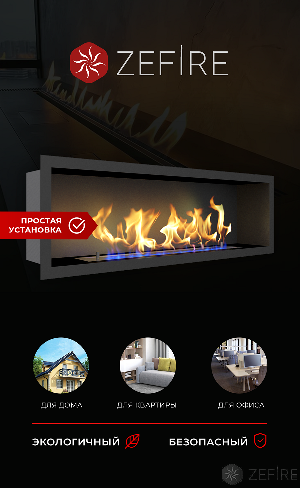Настенный биокамин Flagman 1000 от Zefire является залогом комфортной и уютной обстановки в жилом помещении. Наблюдая за горением «живого» пламени, удастся расслабиться и отдохнуть после тяжелого рабочего дня. При этом устройство не требует установки дымохода или вытяжки, так как не выделяет дыма, копоти и гари. Не нужны и специальные разрешения. Что касается монтажа, то он осуществляется быстро и без особых навыков. Надежный топливный блок выполнен из нержавеющей стали с ручной заслонкой в виде крышки. Работает на жидком биотопливе. Топливный блок выполнен из нерж. стали, ручное управление, работа на жидком биотопливе. Внимание: соблюдайте рекомендации по безопасности и правильному размещению относительно горючих поверхностей и элементов интерьера.