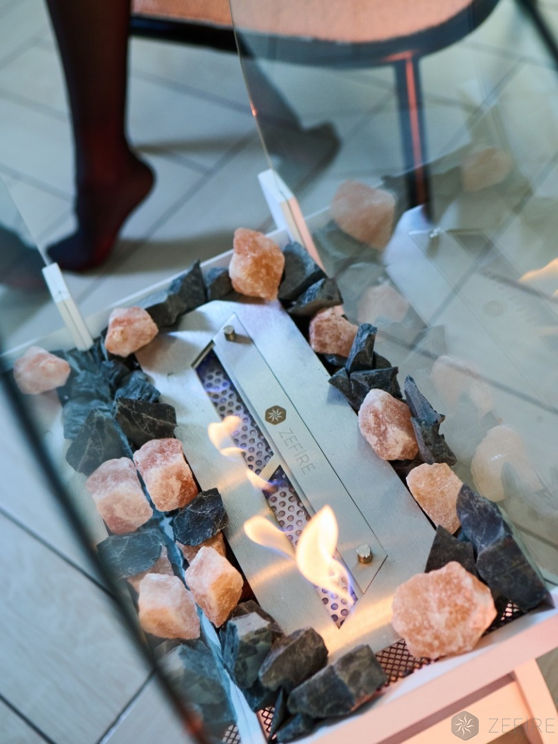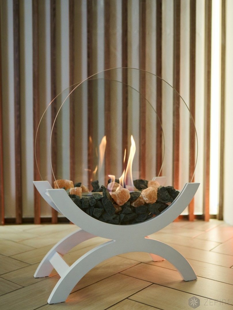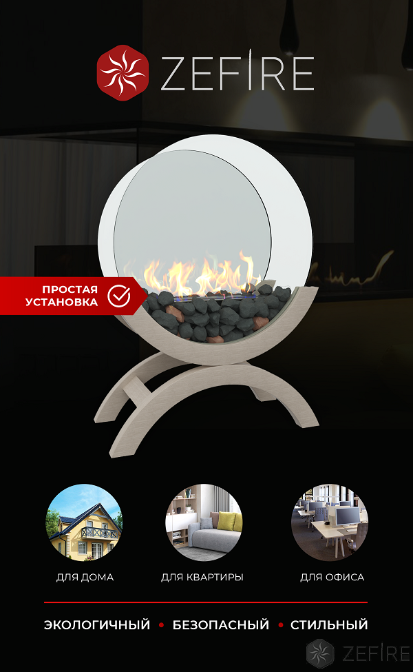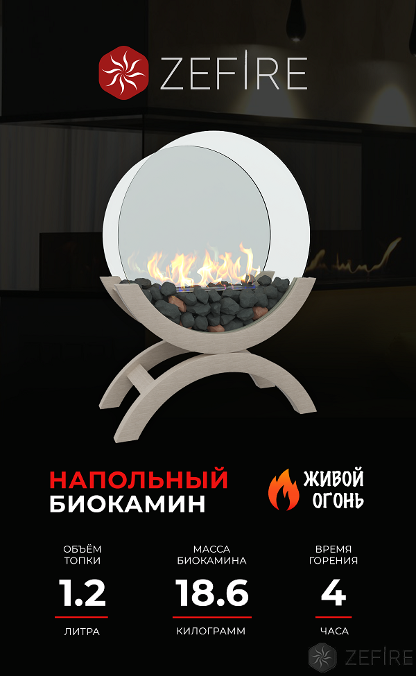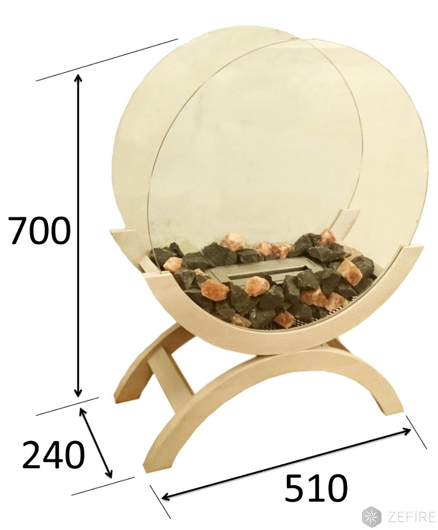 Биокамин Zefire Iris средний светлый, линия огня 250 мм, ручное управление.