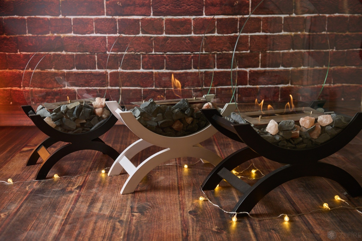 Экологичность и безопасность модели подчеркивает присутствие в ее конструкции природных материалов. Остов биокамина выполнен из натурального бука, который может быть окрашен в любой цвет из палитры TIKKURILA. Пространство вокруг топливного блока заполнено камнями.
