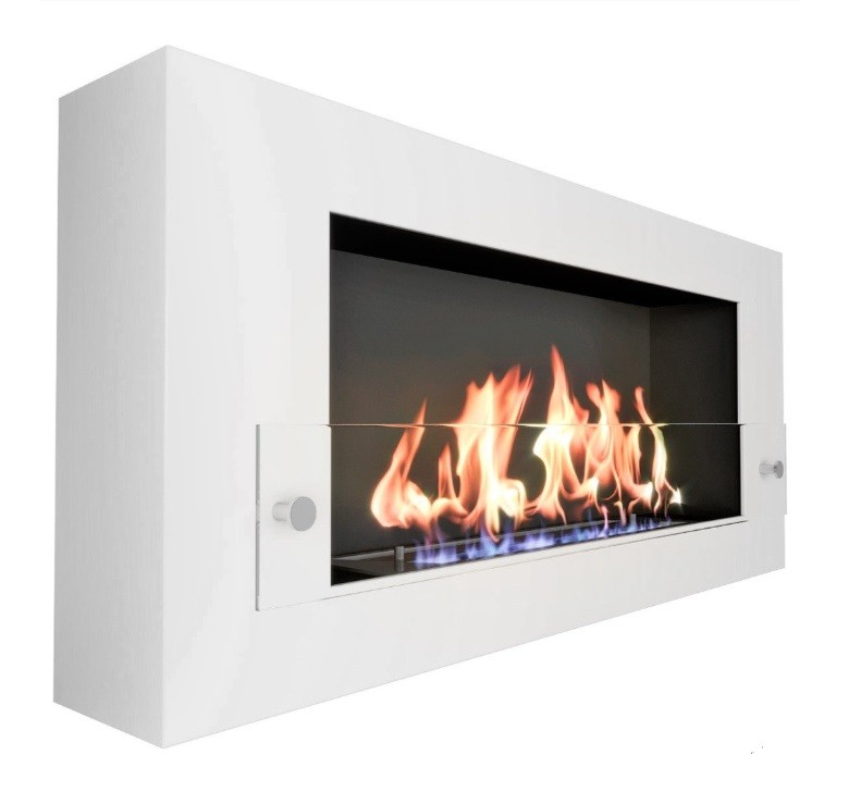 Биокамин Zefire Orion 900 c белой рамкой со стеклом, настенный, объем топки 2,5 л, линия огня 400 мм, габариты камина 400х900х131 мм