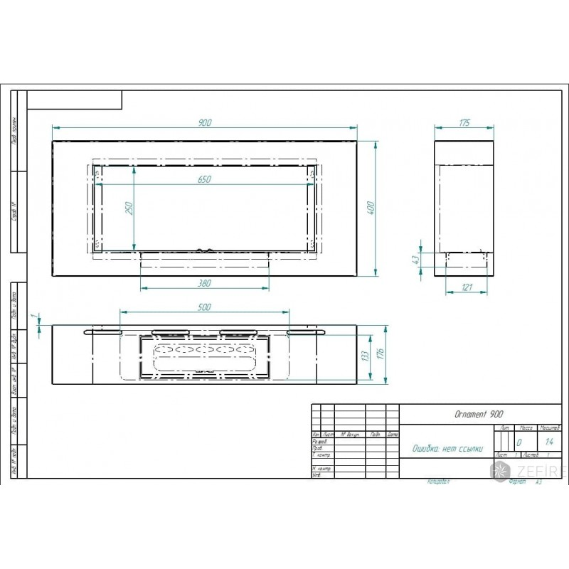 Биокамин Zefire Ornament 900 (Estetic Flame), объем топки 1,7 л, линия огня 300 мм, габариты камина 400х900х175 мм, портал в комплекте