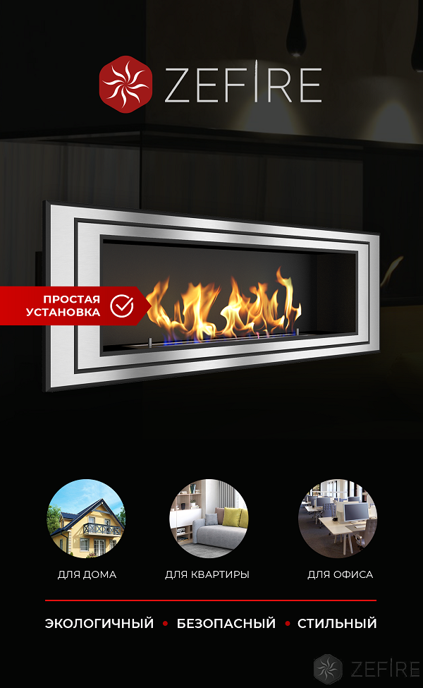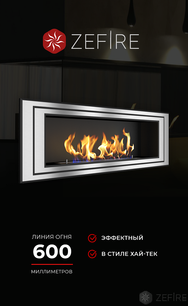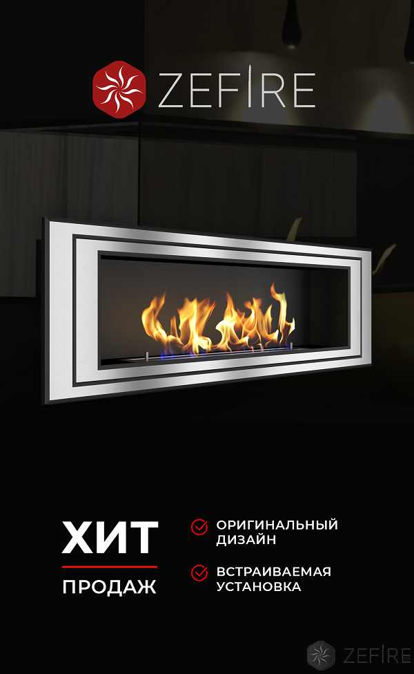 Биокамин Sirius 1200 от российской торговой марки ZeFire – это стильная модель встраиваемого настенного биокамина, которая будет одинаково удачно смотреться в современном и классическом интерьере. Такой биокамин не занимает в помещении лишнего пространства, потому подойдет даже для небольших площадей. Его монтаж не требует устройства дымохода или вытяжки и может выполняться без специальных разрешений.