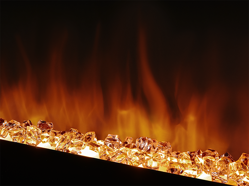 Очаг с диагональю 60 дюймов можно удобно разместить в пространстве, встроив в нишу или портал. Благодаря длине панели – 153 см – непрерывная линия огня будет обращать на себя особое внимание, а три вида декоративного топлива позволят вносить разнообразие в дизайн камина и вид помещения.