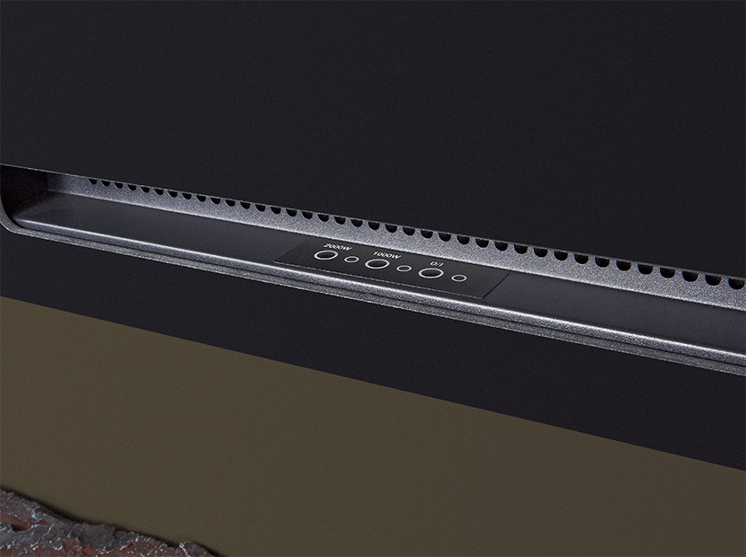 Настраивать работу очага можно с помощью скрытой панели управления или пульта, расположившись в любимом кресле. Выберите оптимальную для себя мощность обогрева – 1 и 2 Вт, чтобы наполнить помещение теплом. Когда в комнате станет комфортно, установите режим «Эффект пламени», чтобы наслаждаться светом огня при минимальном потреблении электроэнергии – 12 кВт. Реалистичный звук потрескивания дров уведет вас от суеты городской жизни.