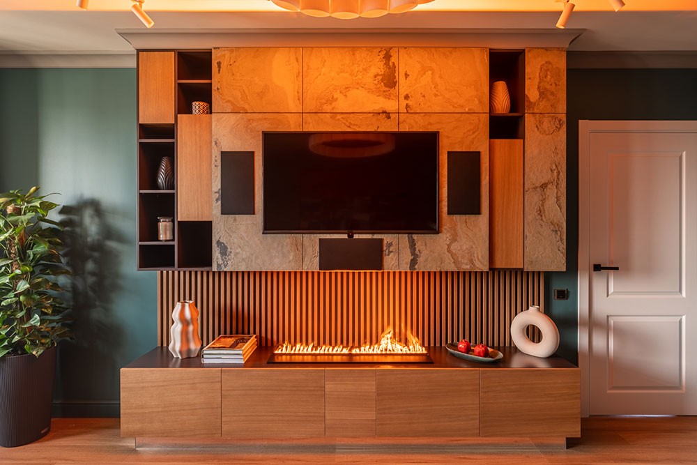 Камином можно управлять при помощи Bluetooth пульта ДУ – включать и выключать, менять интенсивность пламени. Очаг предназначен для встроенного размещения в квартире или загородном доме, камин также украсит холл отеля, бизнес-центра, ресторана или торгового центра. Камин работает на фильтрованной воде, которую необходимо заливать в специальный бак. Работа от водопровода в этой серии не предусмотрена.