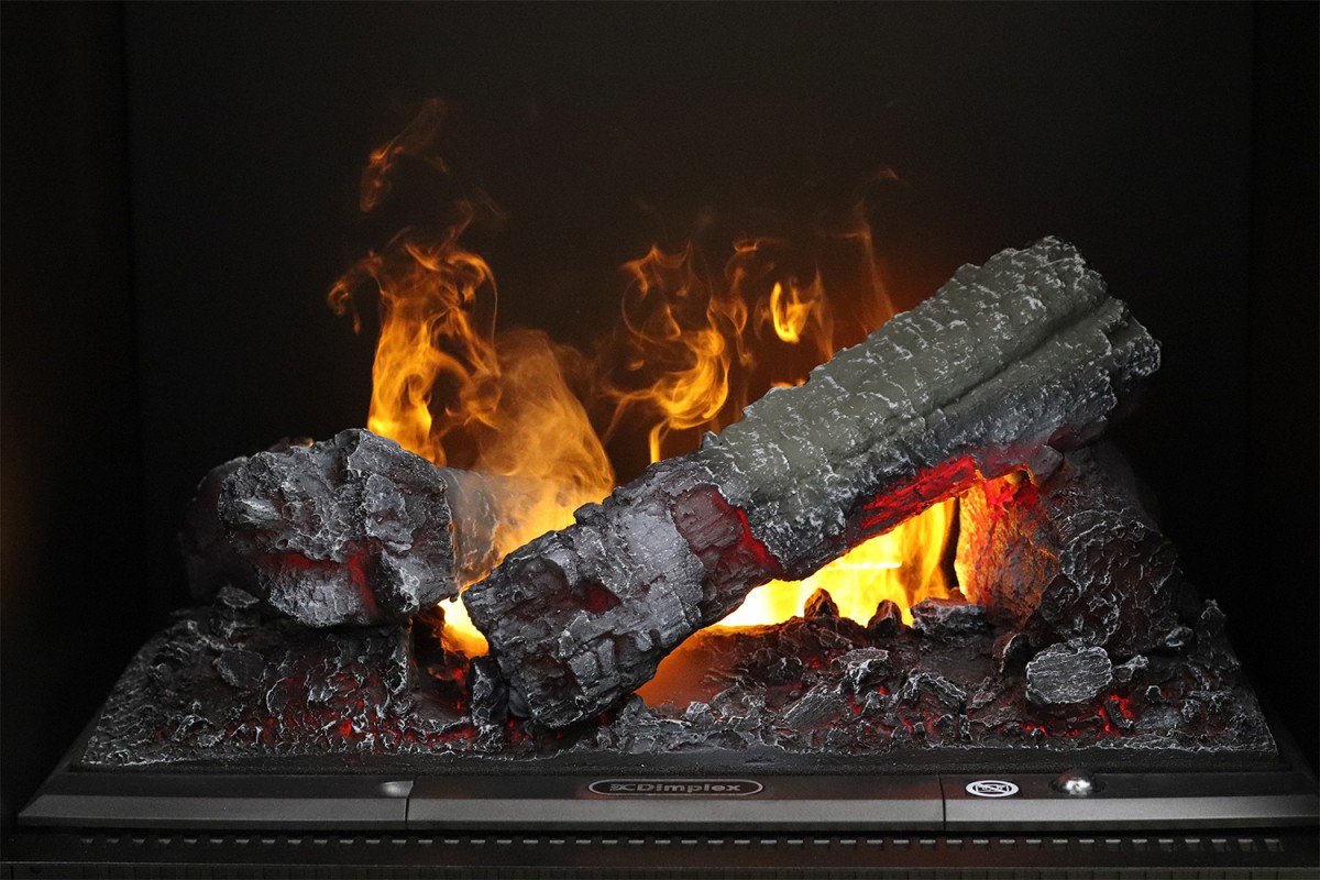 Реалистичность поддерживается искусно выполненным декором. Муляж дров визуально не отличается от настоящих поленьев и наводит на воспоминания об ароматах вековых деревьев в свежем лесу. Подсвечиваясь, дрова полностью повторяют вид тлеющей древесины и завораживают своей натуральностью. Дрова, охваченные огнем, прекрасно дополняет дизайн камина. Узкий вытянутый корпус черного цвета смотрится элегантно и подчеркивает красоту безудержного ярко-оранжевого пламени.