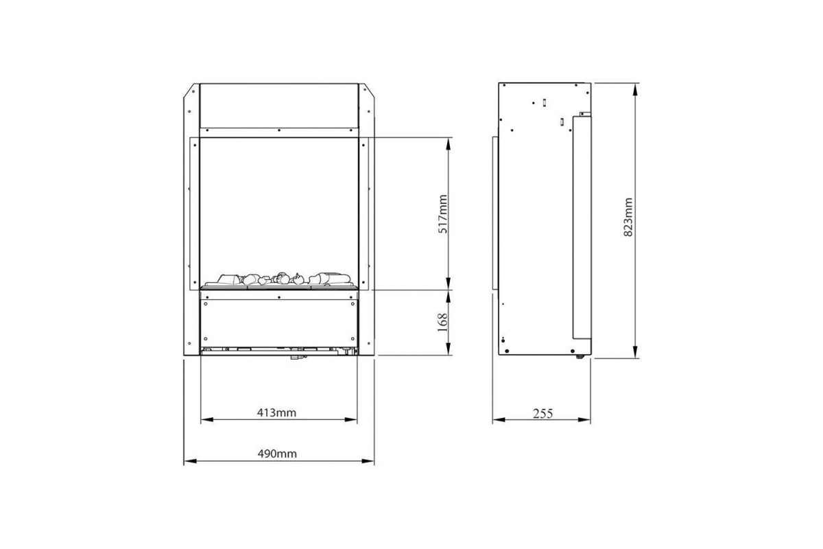| Размер очага (ШхВхГ), мм | 490х825х270 |