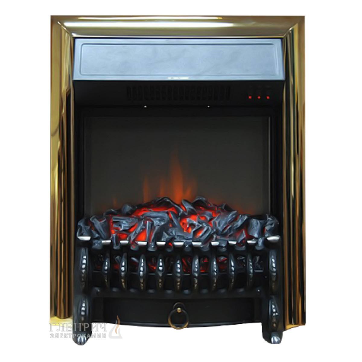 Электрический камин Glenrich Fobos Brass - тип камина: очаг, Мощность: 1.68 кВт, Материал: металл, Режим работы: с обогревом, Ширина: 49.7 см, Высота: 60.6 см, Глубина: 24.5 см, Эффект живого пламени: есть