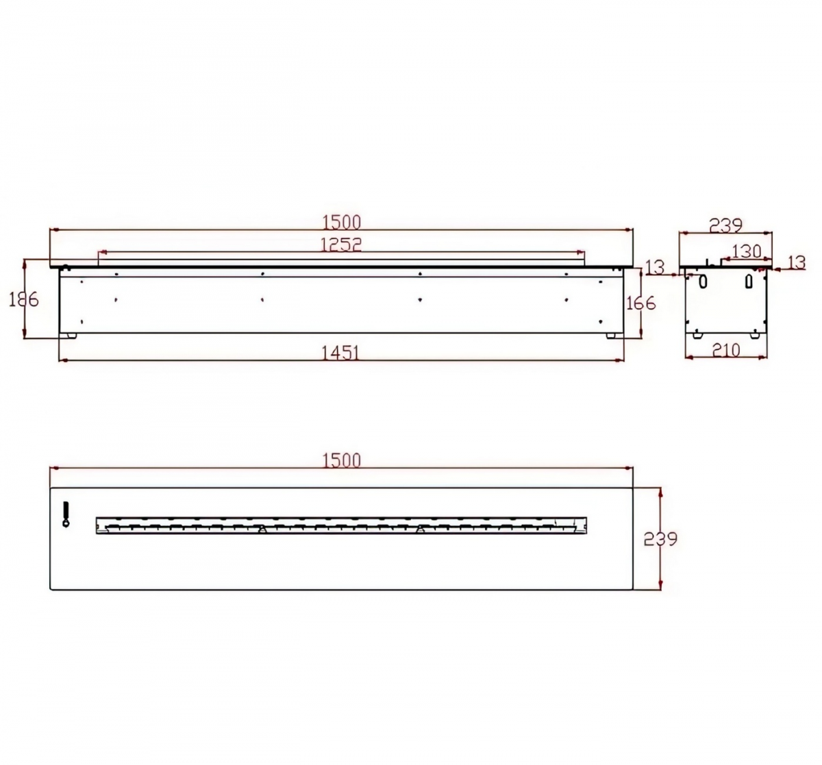 Габаритные размеры (ШхВхГ), мм: 1500х175х240