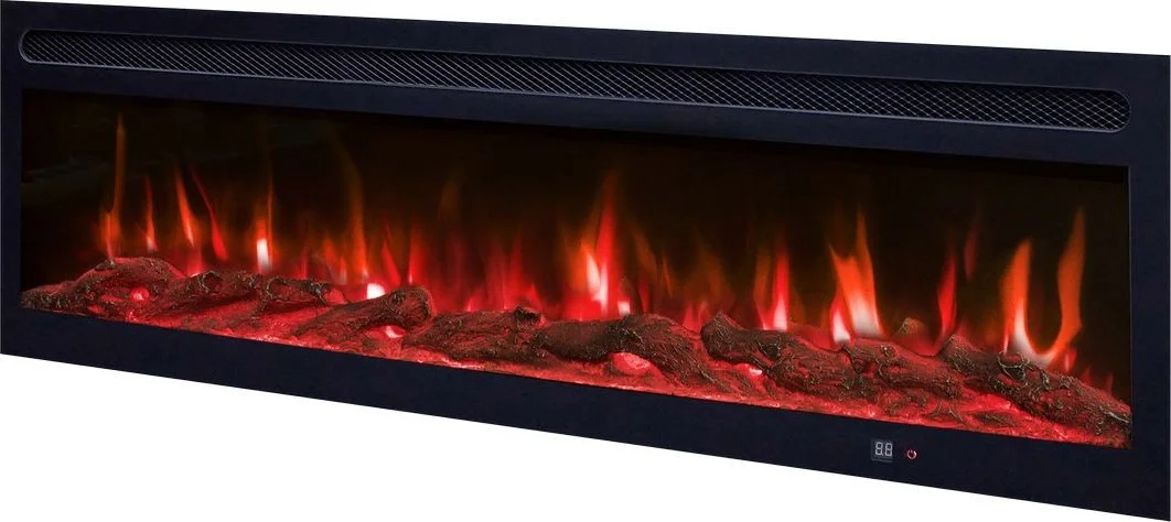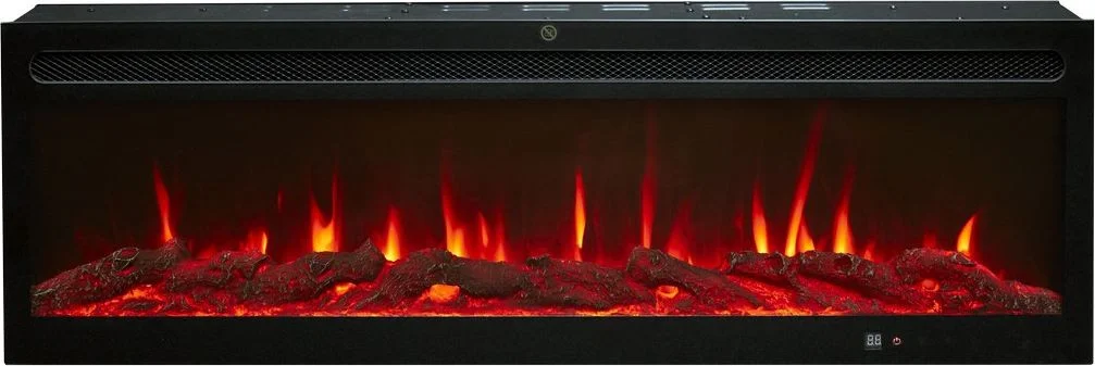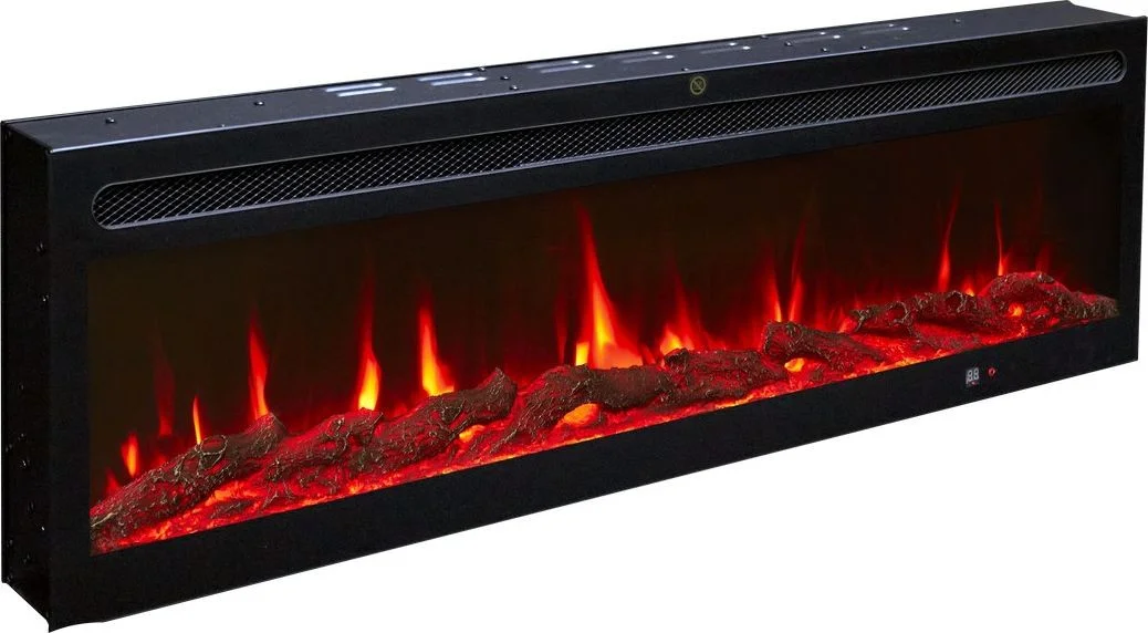 Электрокамин с встраиваемым типом установки, выполненный в современном стиле с корпусом из металла и стекла. Обеспечивает обогрев помещений площадью до 25 м2 с мощностью до 1500 Вт и двумя уровнями регулировки мощности. Оснащён проекционной технологией имитации пламени с 12 цветами и звуковым эффектом потрескивания дров.