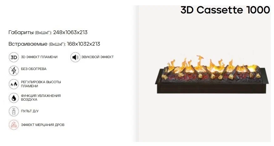 | Используемый в комплекте электроочаг | CASSETTE 1000 3D BLACK PANEL |